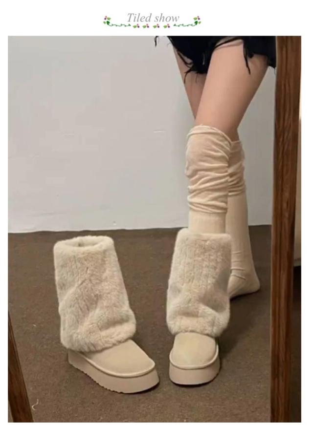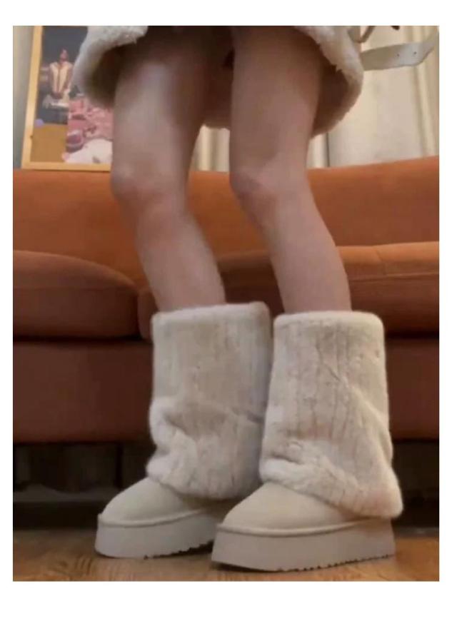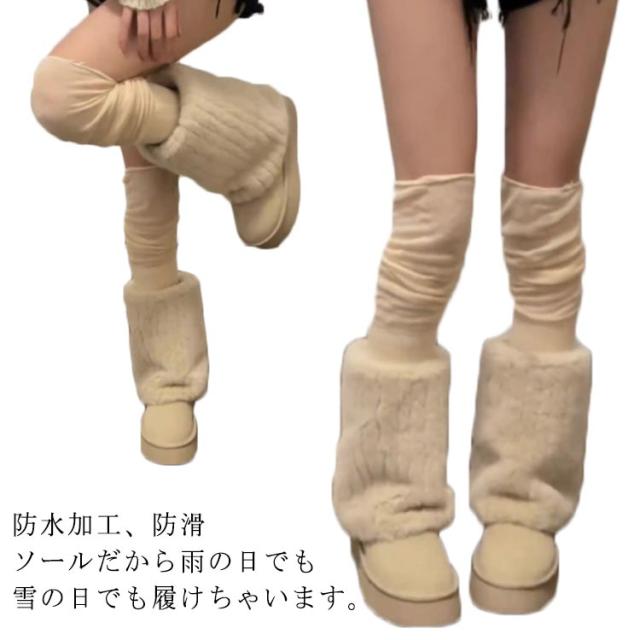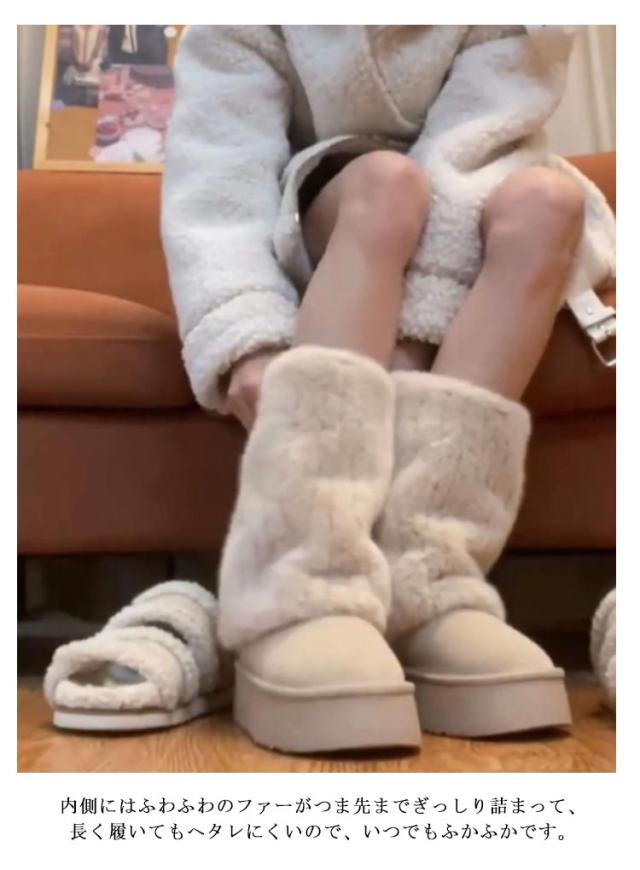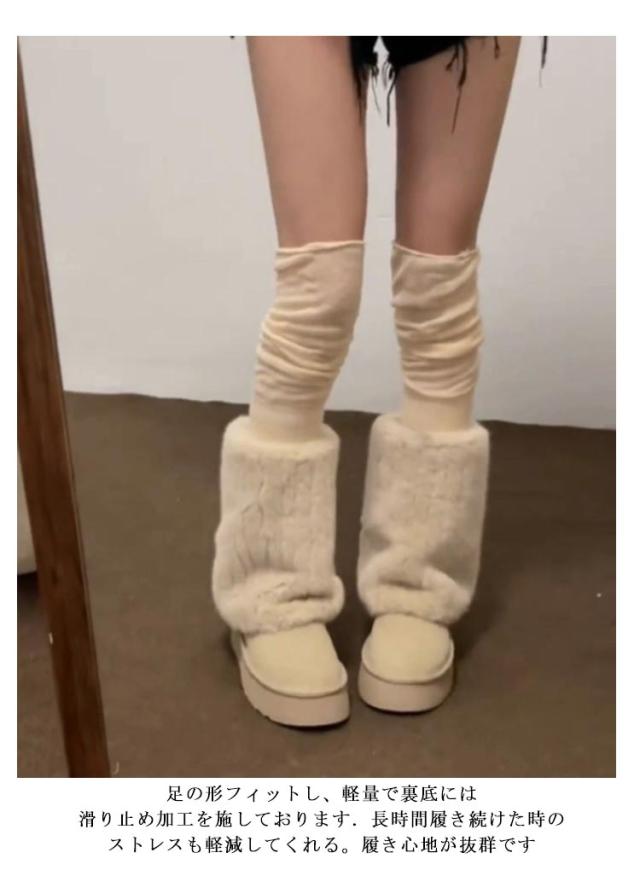 送料無料 ムートンブーツ レディース 冬 真冬 スノーブーツ ブーツ ニットブーツ 厚底 ミドルブーツ 裏起毛 裏フアー ファー付き 走れる ギャル 痛くない もこもこ 大人可愛い 保温 ファ ふわふわ 防寒 滑り止め 雪靴 通学 防滑 雪国 滑らない 大きいサイズ