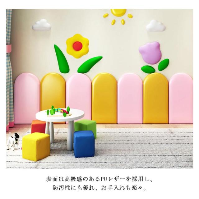 | 【商品名】ウォールクッション 【サイズ】20*60cm、厚さ3cm 【素材】PU、高密度スポンジ、中密度繊維板、その他 【特徴】 お子様の安全を守ってくれるウォールクッション。 柔らかいPUに高密度スポンジ内蔵で弾力性のよいクッション性を持ち、お子様が安全に遊べるスペースを作れます。 表面は高級感のあるPUレザーを採用し、防汚性にも優れ、お手入れも楽々。汚れや足跡がついても、タオルやテッシュで軽く拭き取ることができます。 弾力性の高いスポンジでできており、クッション性に優れて、お子様がぶつかった時の衝撃を和らげます。 工具不要で取り付けはとっても簡単!背面シールをはがして、壁にしっかり押して取り付けます。壁に直接貼りたくない場合は、マスキングテープや養生テープを壁に貼り、その上から両面テープで貼り付けてください。 子供部屋だけではなく、ペットルーム、リビングルーム、保育園、幼稚園の遊び場など様々な場所で使用できます。 保護クッションとしても、壁飾りとしても◎ | |