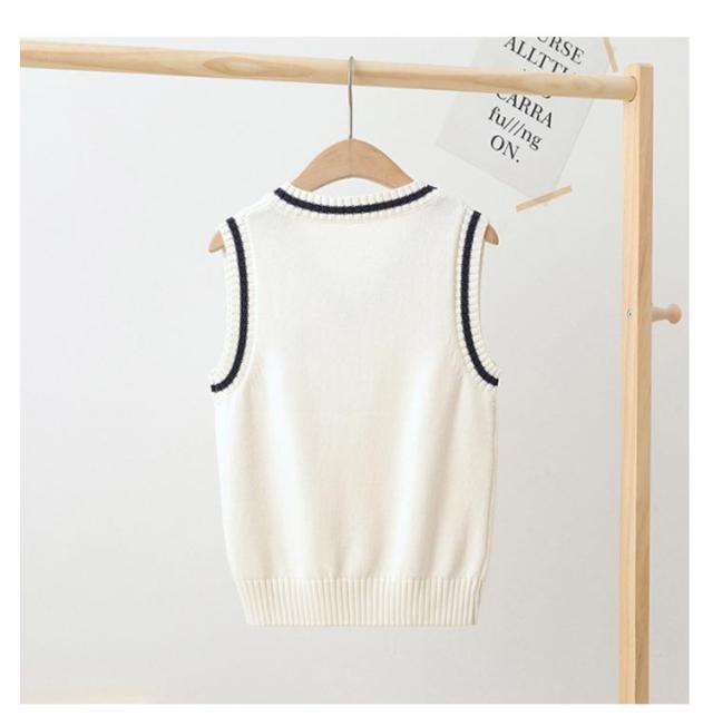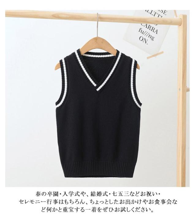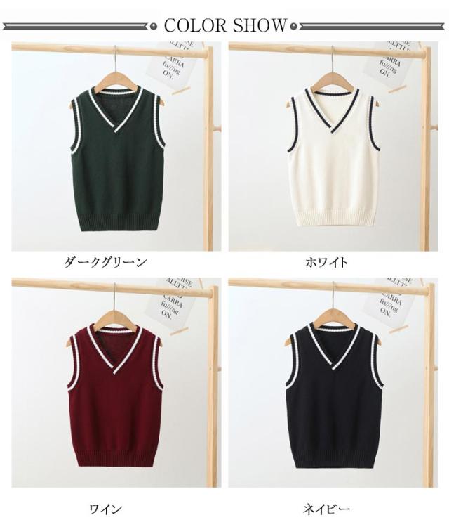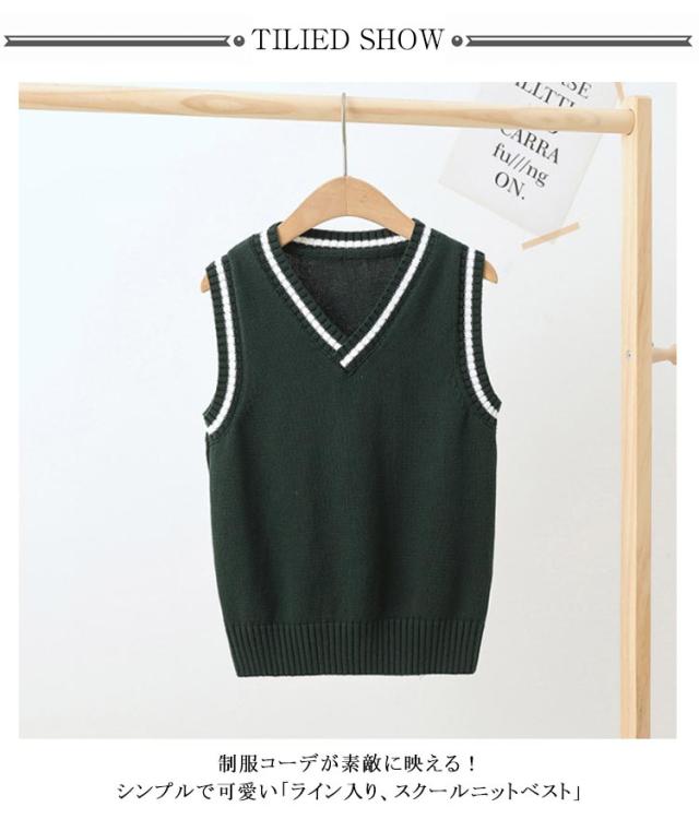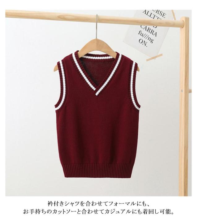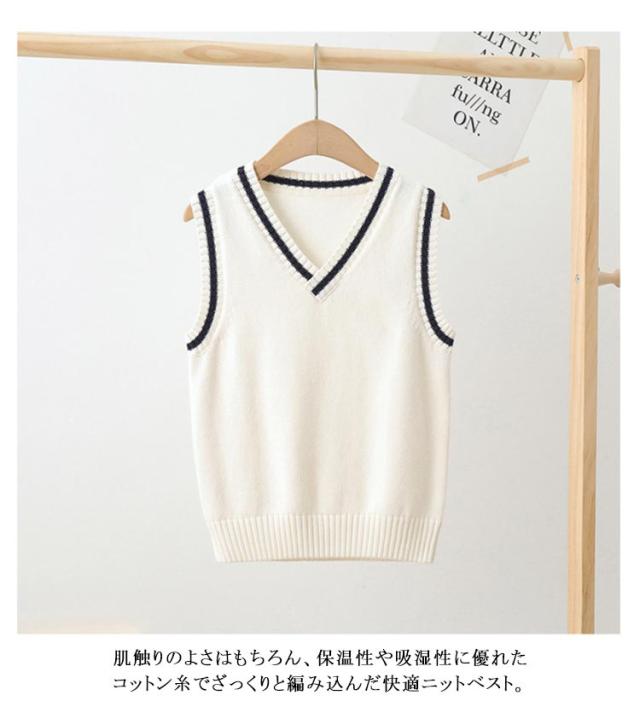 男女兼用 通学 キッズ 入学 ニットベスト スクールベスト 女の子 スクールベスト コットン Vネック 子供 ジュニア ライン入り 制服 通園 綿 子供用 卒業式 入園 フォーマル 発表会 幼稚園 保育園 洗える 春