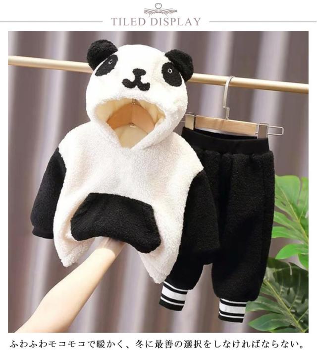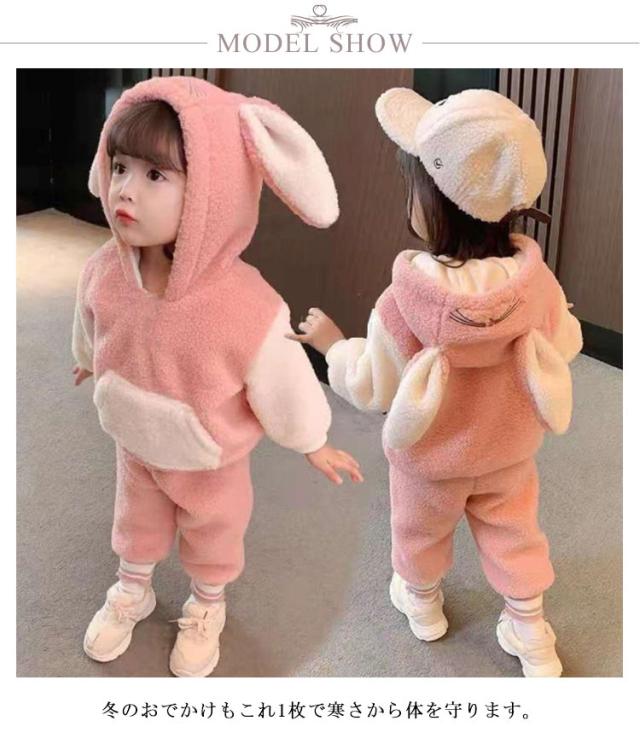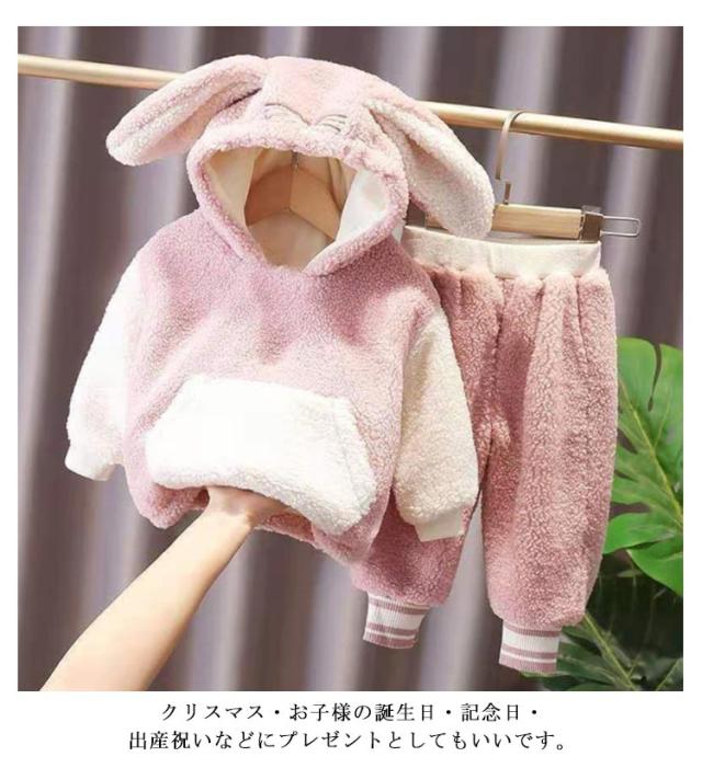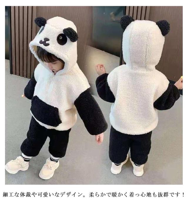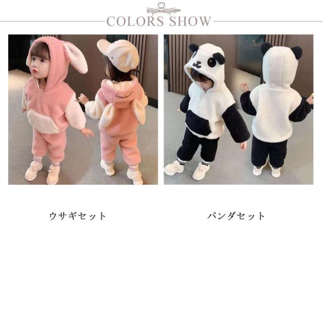 もこもこ パーカー 長袖 通学 子供服 上下セット セットアップ アウター パーカー パンダ柄 ウサギ 耳付き キッズ ルームウェア 部屋着 ベビー服 赤ちゃん 女の子 男の子 秋冬 耳付きフード もこもこ プルオーバーパーカー 通園 幼稚園 80 90 100 110 120 ギフト 送料無料
