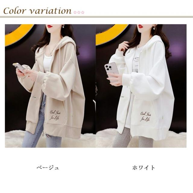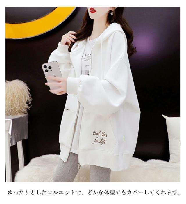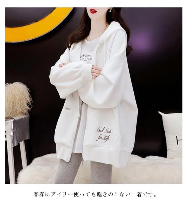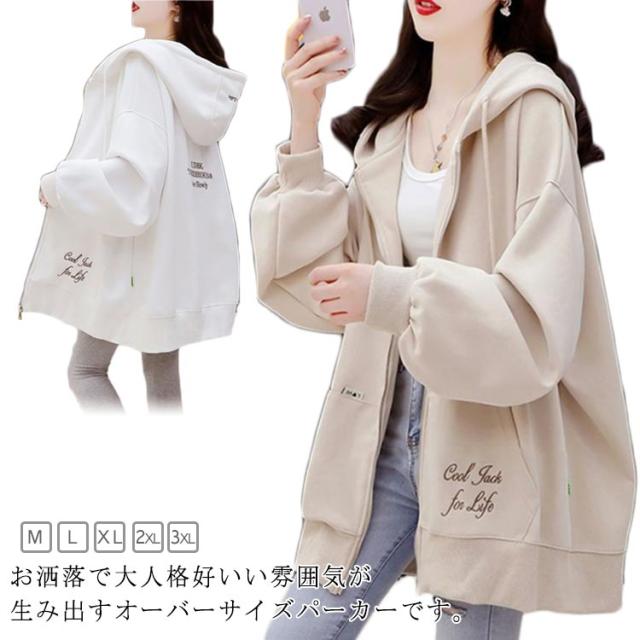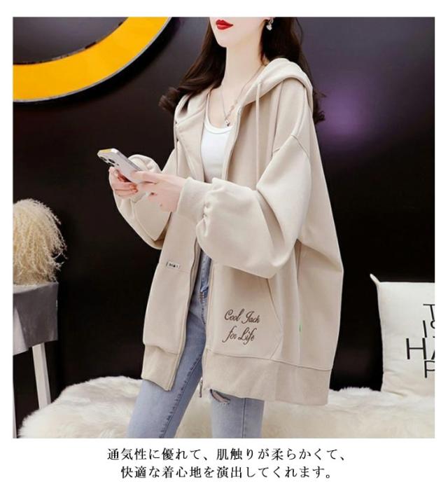 ロングパーカー オーバーサイズ ビッグパーカー アウター フード付き 大きサイズ オーバーサイズ パーカー カジュアル レディース ジップアップ 春服 秋服 ドロップスリーブ