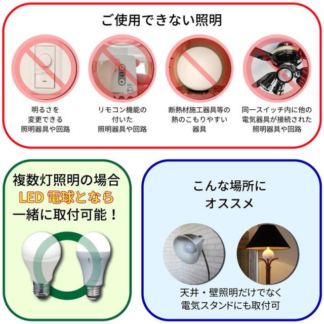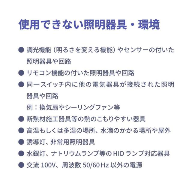 ●調光機能(明るさを変える機能)やセンサーの付いた照明器具や回路