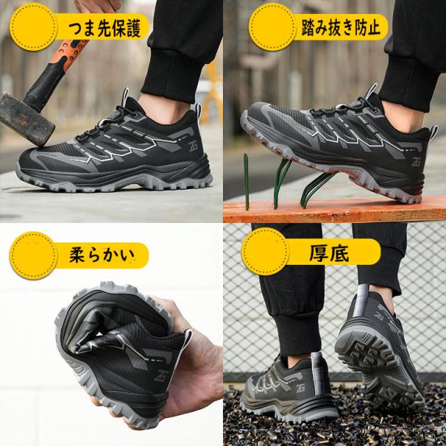 安全靴 おしゃれ メンズ レディース スニーカー 黒 作業靴 厚底 滑りにくい 大きいサイズ 踏み抜き防止 通気 軽量 つま先保護