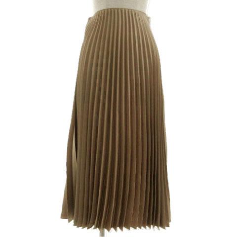 【中古】ザラ ZARA スカート プリーツ フレア ロング丈 ウエストゴム シャイニー 光沢 茶系 ベージュブラウン XS
