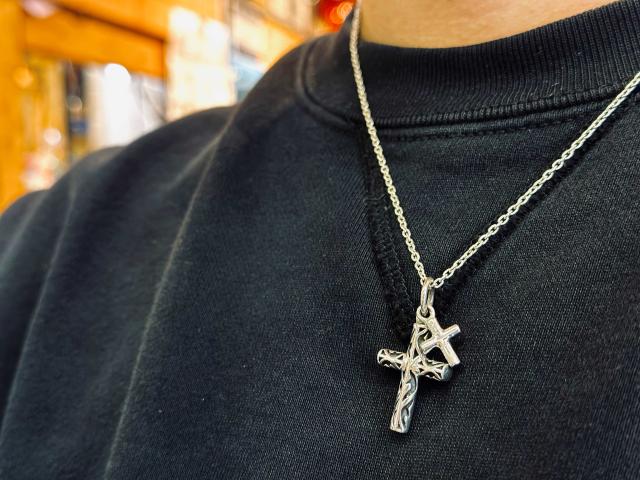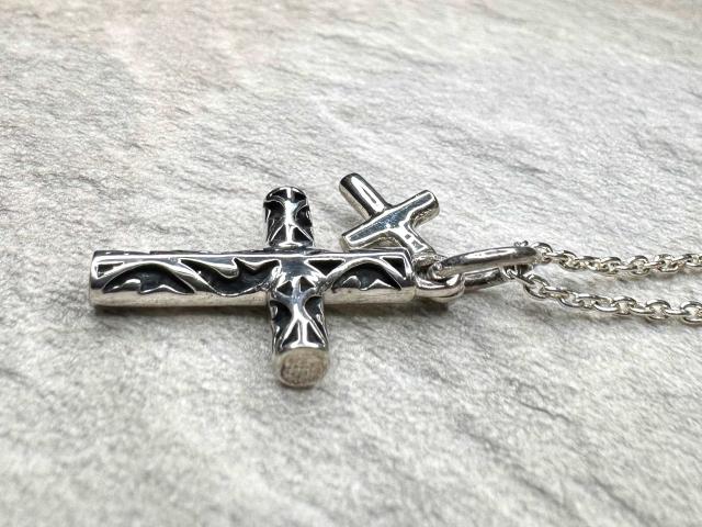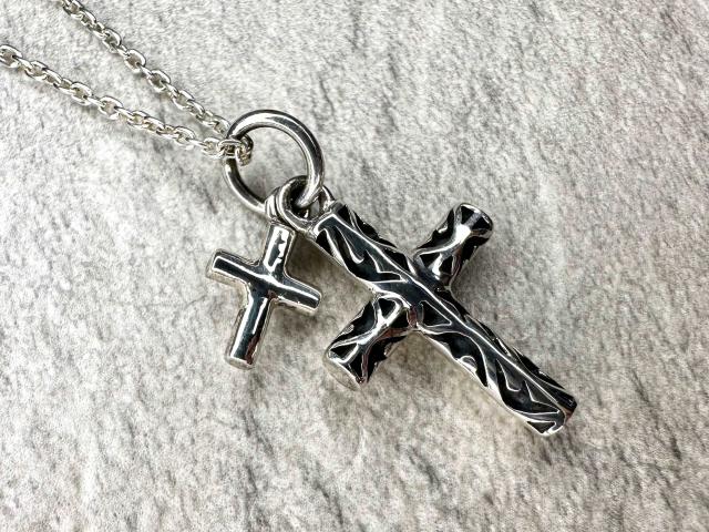 小さなクロスチャームを重ねたクロスペンダント。