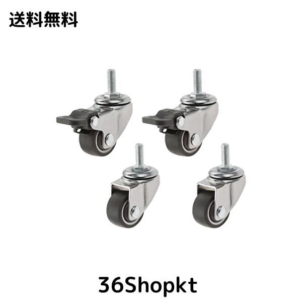 Yetaha キャスター 1インチ 合計耐荷重158kg ネジ式 車輪 360度回転 静音 交換用キャスター 取付ナット付き(ストッパー有り×2+ストッパ