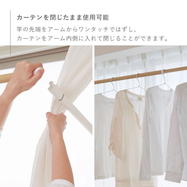 竿の先端をアームからワンタッチではずし、カーテンをアーム内側に入れて閉じることができるのでプライバシーも守られます。