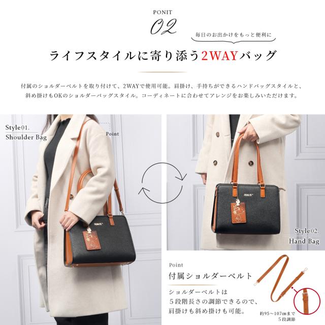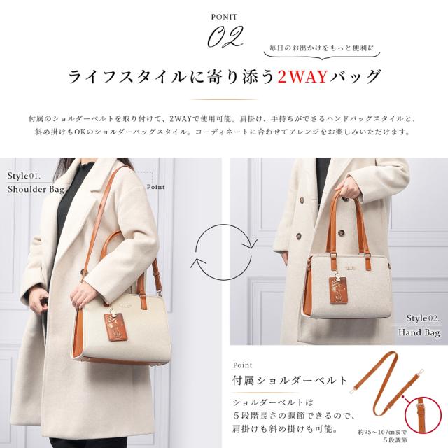 取り外し可能なショルダー付きなので、ショルダーバッグとハンドバッグで使い分けも可能