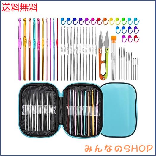 RMTIME かぎ針編み針セット 54本 かぎ針編みフックキット 収納ケース付き 人間工学に基づいた編み針 鈍針 ステッチマーカー DIY 手編みクラフト アートツール 初心者用 (ブルー)