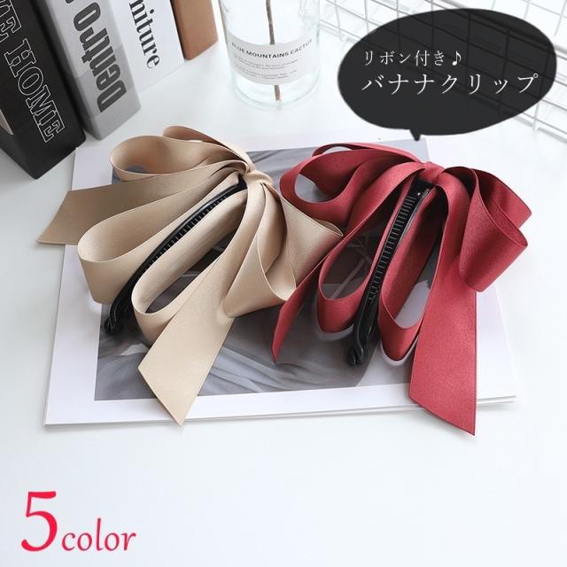 バナナクリップ ヘアクリップ レディース 女性 ヘアアクセサリー ファッション雑貨 ダブルリボン 無地 ブラック ワインレッド