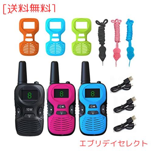 TRH 子供用 特定小電力トランシーバー 3台セット 小型 おもちゃトランシーバ 充電式 省電力おもちゃ無線機 超簡単な操作 LED ディスプレ