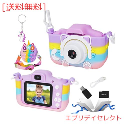 ?【多機能なキッズカメラ】写真を撮るだけでなく、いるいるな機能も付けでおり、タイミング写真、再生、ゲーム、フォトステッカー、音楽再生、連続撮影、セルフィー、ビデオなどがあります。 操作画面は日本語対応し、それに、6種類写真フィルターと5種類面白い分割画面のほかに、28種類のフレーム機能がある綺麗な写真を撮ることができます。子供たちにカメラの魅カを感じさせ、幸せな時間を作られましょいう。