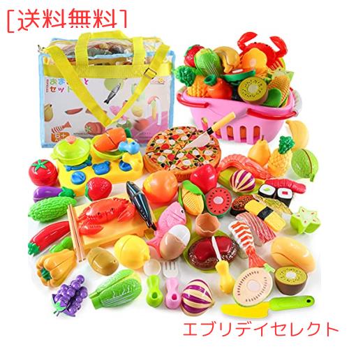 ◆商品名:Button Moon おままごとセット 60PCS キッチンおもちゃ バスケット付き 知育玩具 子供 果物 野菜 DIY寿司 海鮮 食品衛生法に合格 ままご
