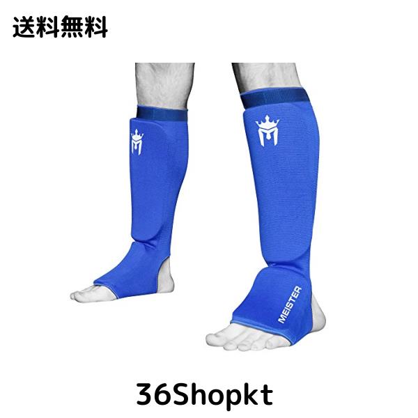 MMA キックボクシング 正規品 Meister レガース エラスティックパッド レッグガード(ペア) - 青 - Small/Medium
