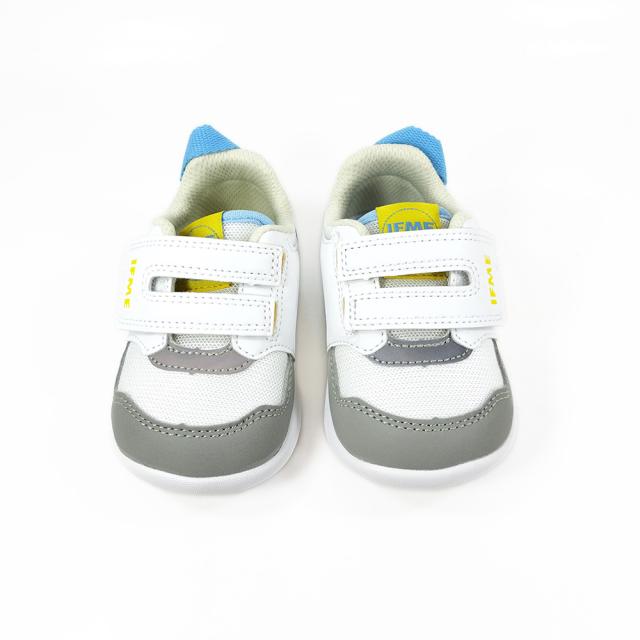 IFMEイフミーのベビーシューズです。履き口が広くて履かせやすく、よちよち歩きをサポートするツーステップインソールで足に優しい設計になっています。
