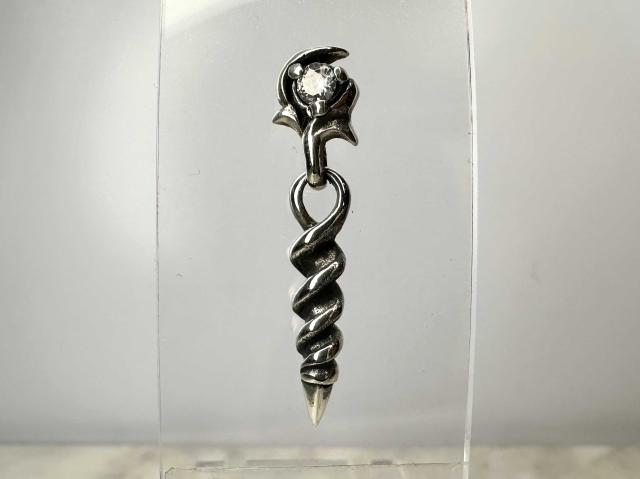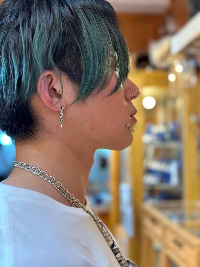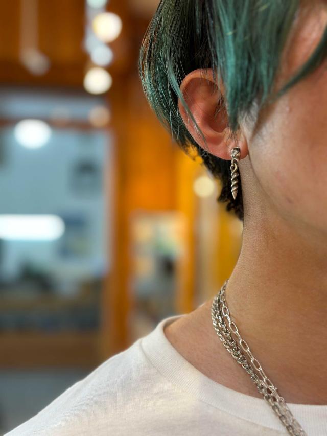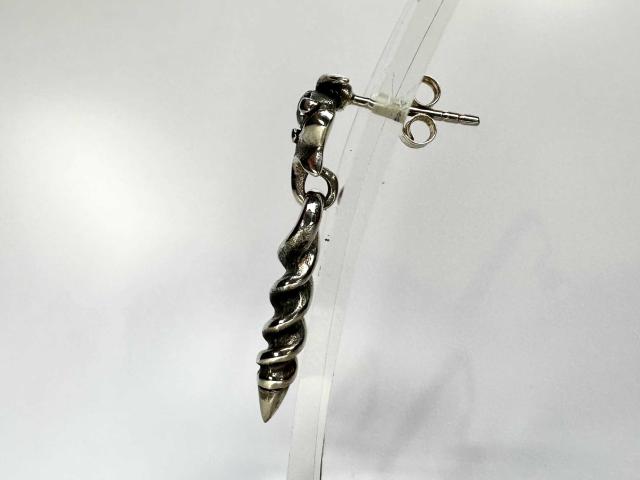 ユニコーンの角のようなスクリューがぶら下がるドロップタイプのピアス。