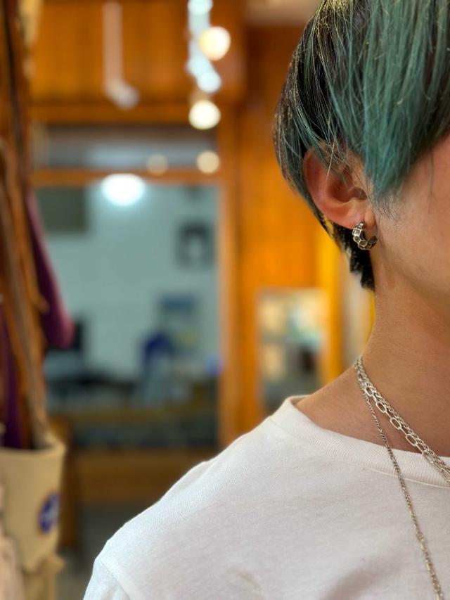 ゴツゴツとした質感がワイルドな印象のフープピアスです。