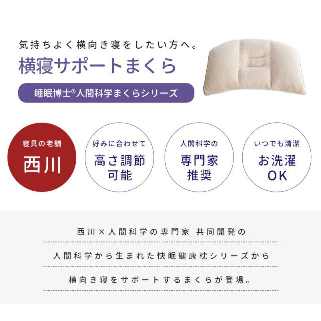 西川 枕 肩こり 高さ調節 敬老の日 横向き寝 西川 ×医学博士 睡眠博士シリーズ 人間科学まくら 「横寝サポートまくら」 クリスマス ギフト パイプ 首こり