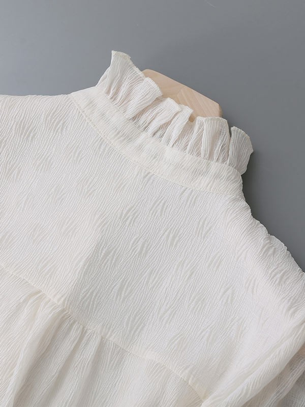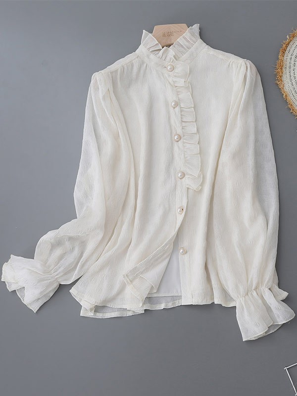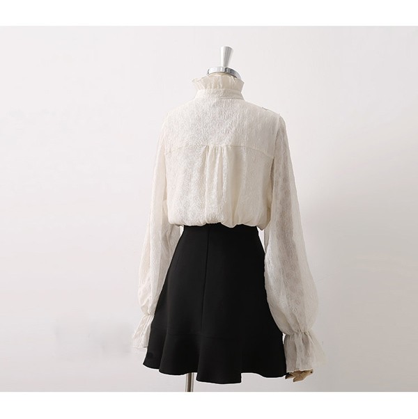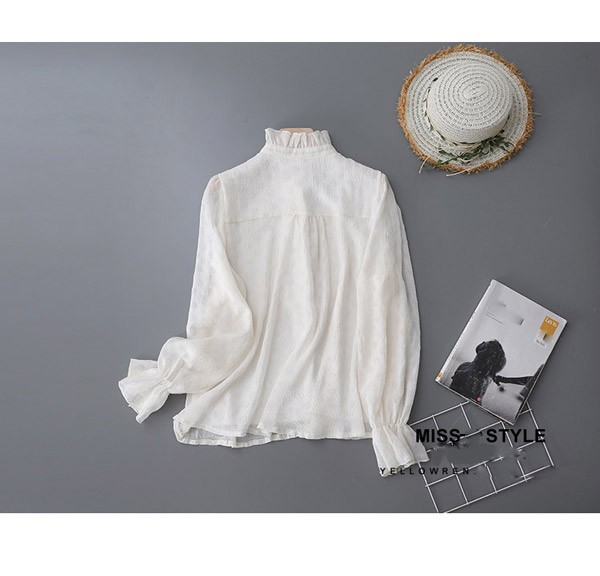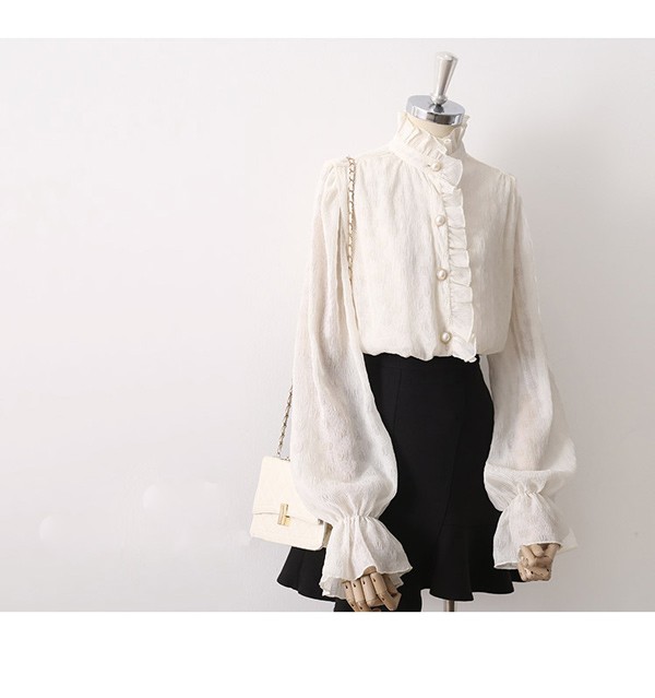 ブラウス レディース 長袖ブラウス 春 秋 オフィスブラウス パフスリーブ ステンカラー 立ち襟 裏地り 就職活動 オシャレブラウス 透け感 シフォントップス 韓国風 大人 上品 通勤OL 森ガール dk021m3m3d7