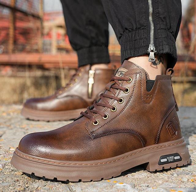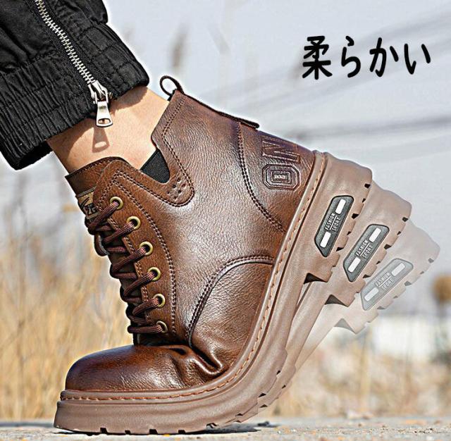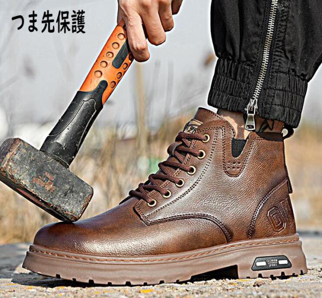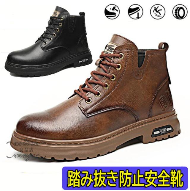 安全靴 革 ブーツ ハイカット おしゃれ メンズ レディース 黒 通気 大きいサイズ 厚底 踏み抜き防止 滑りにくい つま先保護 作業靴