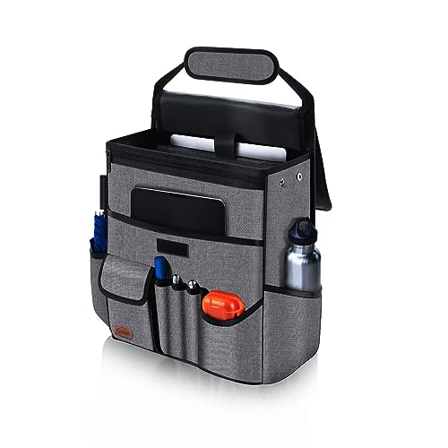 Smof 車用収納ポケット 蓋付き 改良デザイン 助手席前後 撥水加工 多いポケット 持ち運びやすい(グレー)