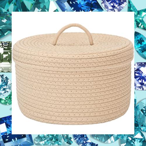 【デザイン】蓋をぽんと乗せるだけだし中身も見えないのでいい感じです。お菓子のパッケージの雑然としたカラフルさがこのバスケットに入れることにより見た目がすっきりとしました。折りたたみ可能なので使わない時はコンパクトに収納できます。
