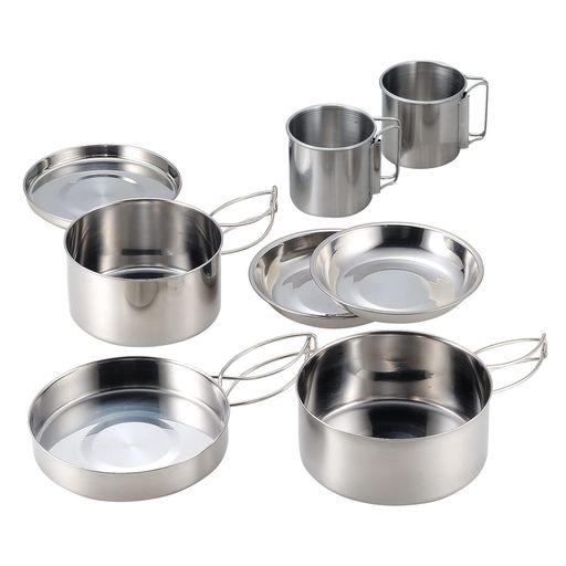 カクセー アウトドア クッカー 丸型 8点 セット ステンレス 鍋 フライパン 皿 マグカップ 直火 コンパクト収納 袋付き キャンプ SOLA ソラ PP-02