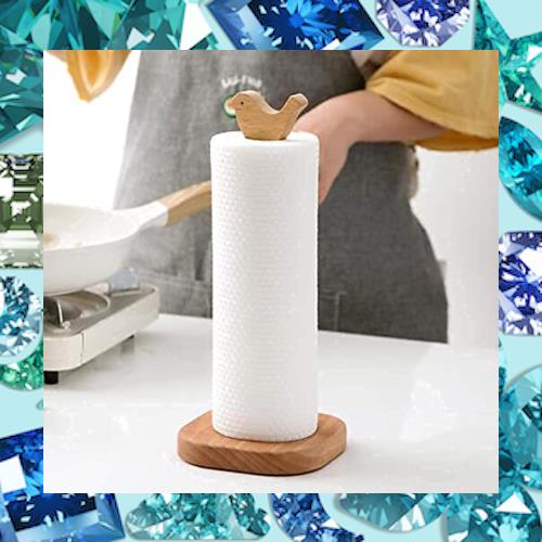 ◆商品名:キッチンペーパーホルダー ペーパー スタンド 木製 ロール紙 縦置き 和風 小鳥 かわいい 滑り止め リッピング キッチン収納 テーブル 浴