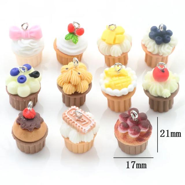 おいしそうなカップケーキをモチーフにしたユニークで面白い食玩や食品サンプルのようなチャーム用のマルカンが付いたDIYクラフトパーツです。