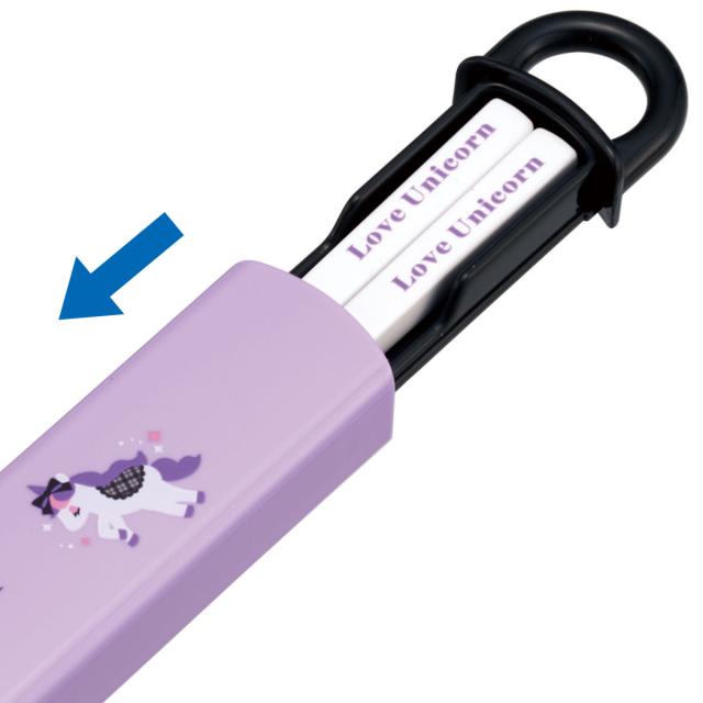 ●ラブユニコーンの開けやすいスライド式箸箱とお箸のセットです。
