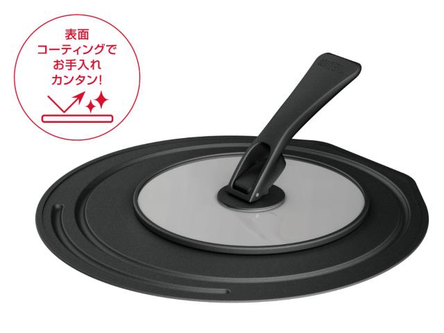 汚れの落ちやすいふっ素樹脂加工が施されているので、油の飛び散る料理でも安心してお使いいただけます。また、フチの部分は平らで余計な隙間がないので洗いやすく、お手入れも簡単です。