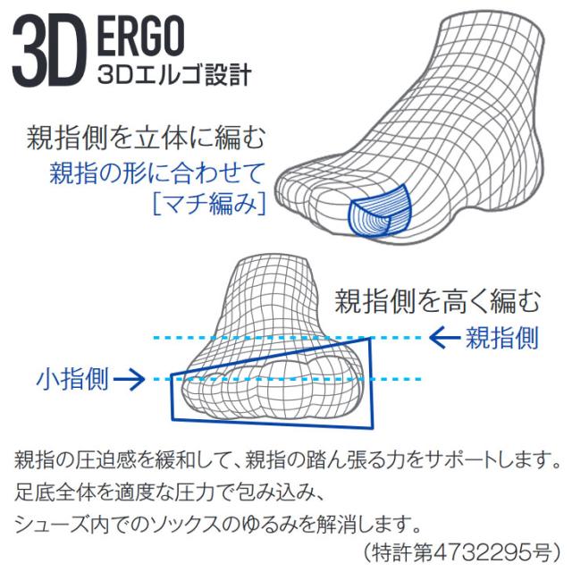 ・仕様:再生ポリエステル、吸汗速乾、3Dエルゴ、足底パイル、直角型、抗菌防臭、消臭