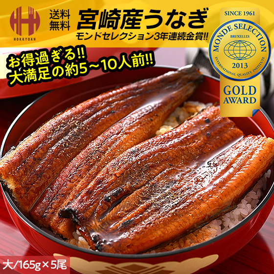 うなぎ 鰻 蒲焼き 国産 鰻の蒲焼 うなぎ蒲焼 宮崎県産 大サイズ 165g前後×5尾 山椒付き鰻蒲焼のタレ×5袋 宮崎 無地箱 お歳暮 御歳暮 ギフト