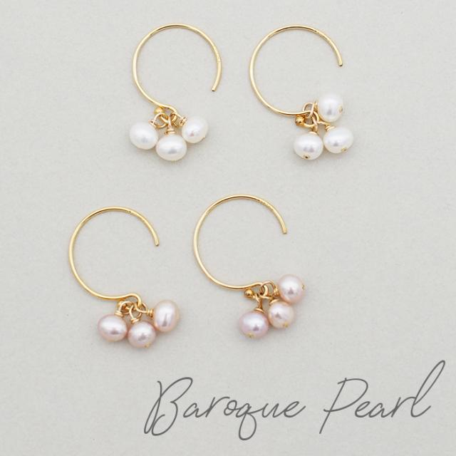 | バロックパール 3連 フックピアス K14GF 淡水パール |