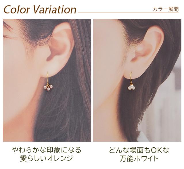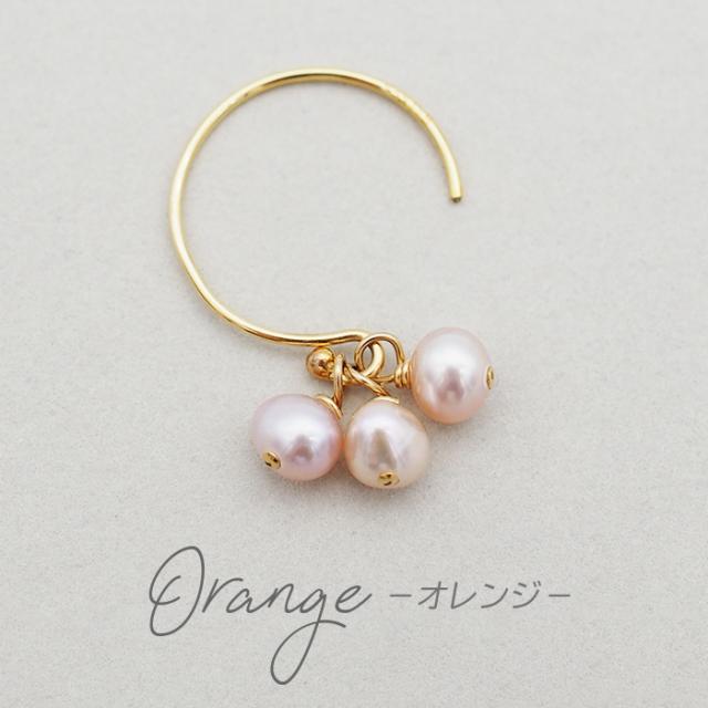 淡水パール ピアス フック バロックパール K14GF 3連 天然 真珠 極小 普段使い オレンジ ホワイト かわいい おしゃれ アクセサリー