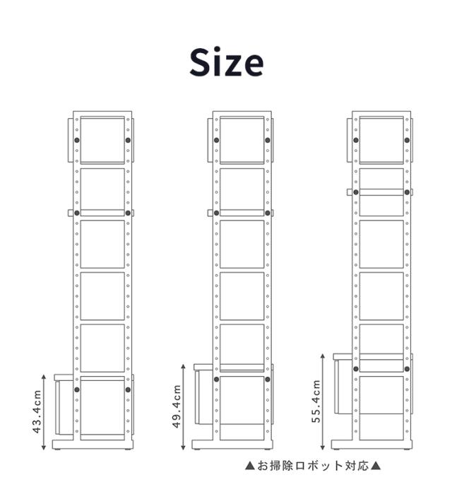 〇下台・棚板の高さは6cmピッチで選択可能、商品最下部にアジャスター付きで水平に設置できます。