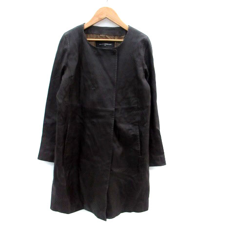 【中古】ビーティングハート BEATING HEART ノーカラーコート ロング丈 レザー 2 茶色 ブラウン /HO20 レディース