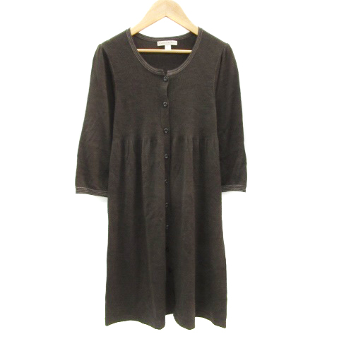 【中古】ヒューマンウーマン ニットワンピース ひざ丈 七分袖 ラウンドネック ウール 2 ブラウン レディース