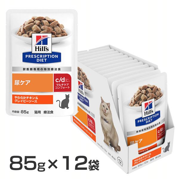 ヒルズ 猫用キャットフード 尿ケア 療法食 プリスクリプション・ダイエット パウチ c/dマルチケアコンフォート やわらかチキン&グレイビーソース 85g×12袋 ヒルズ ウェット 鶏 下部尿路 食事療法 アダルト・シニア 膀胱炎 まとめ買い