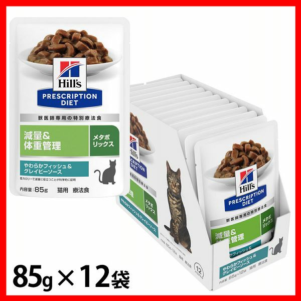 (猫用)キャットフード 体重管理 療法食 プリスクリプション・ダイエット パウチ メタボリックス やわらかフィッシュ&グレイビ−ソ−ス 85g×12 ヒルズ ウェット 魚 低カロリー 減量 食事療法 体重管理 まとめ買い