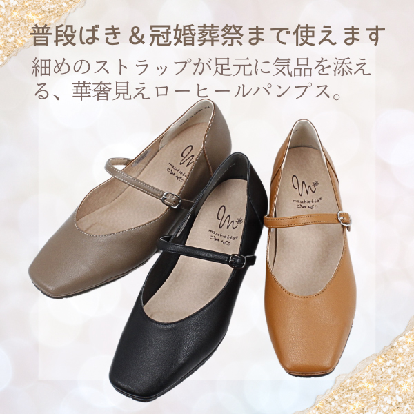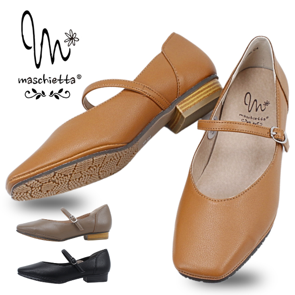 マスチェッタ ローヒール レディース スクエアトゥ ストラップ パンプス maschietta 7409 3Eワイズ 幅広