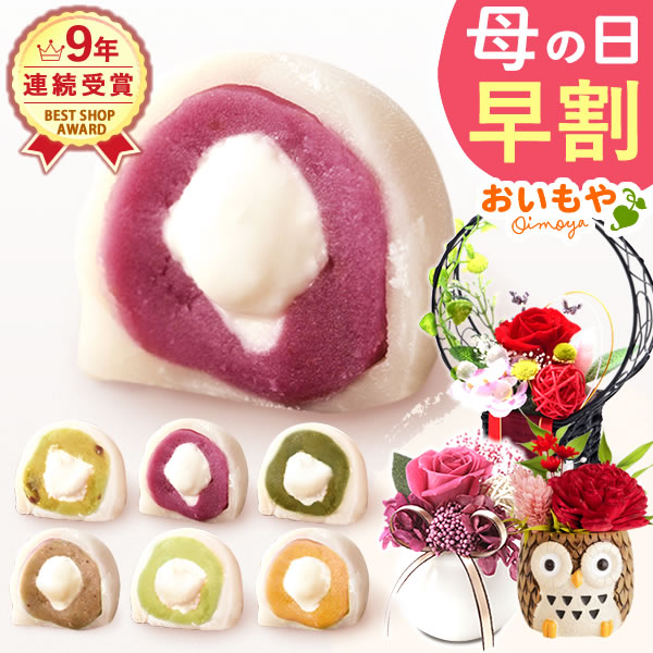 母の日 早割 花とセット プリザーブドフラワー プレゼント ギフト プチギフト 和菓子 ふわとろ大福 詰め合わせ アソート 冷凍 個包装 クリーム大福 プリザーブドフラワー お取り寄せ 送料無料 食べ比べ フルーツ おいもや 母の日 花とセット 母の日 ギフト 母の日 花ギフト