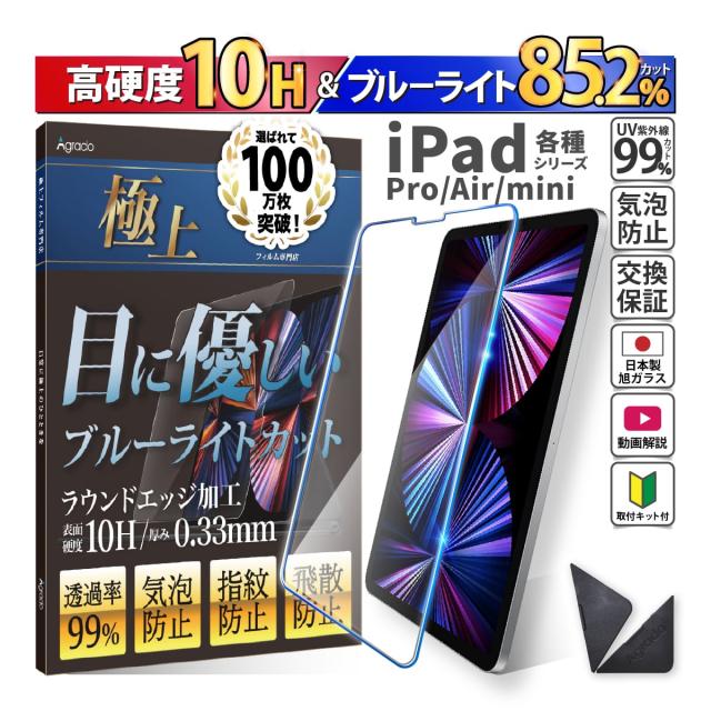 2025年最新型 iPad 各種シリーズ Pro(M4/M5) / Air(M3/M2) ガラスフィルム ブルーライトカット かんたん 安心 日本製 透明ガラス 85.2%カット 保護フィルム スマホフィルム 強化ガラス タブレット 旭硝子製 保証 アイパッド おまけ付き 防水ケース ポイント消化