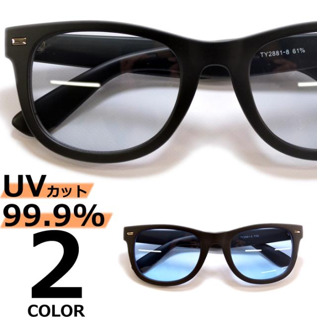 サングラス 伊達メガネ メンズ レディース ウエリントン ウェイファラー ライトカラーレンズ 薄い色 ブラック ブルー グレー マット 艶消し 全2色