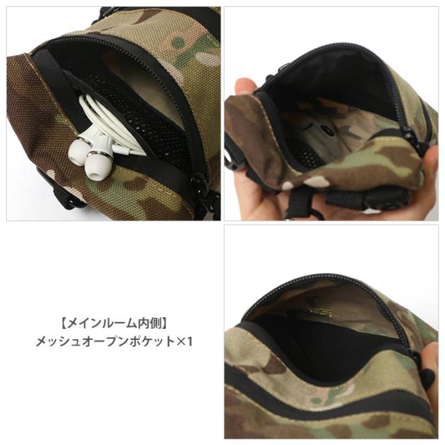 ■仕様:【外側】メインルーム×1、ファスナーポケット×1、Dカン×2 【メインルーム内側】メッシュオープンポケット×1