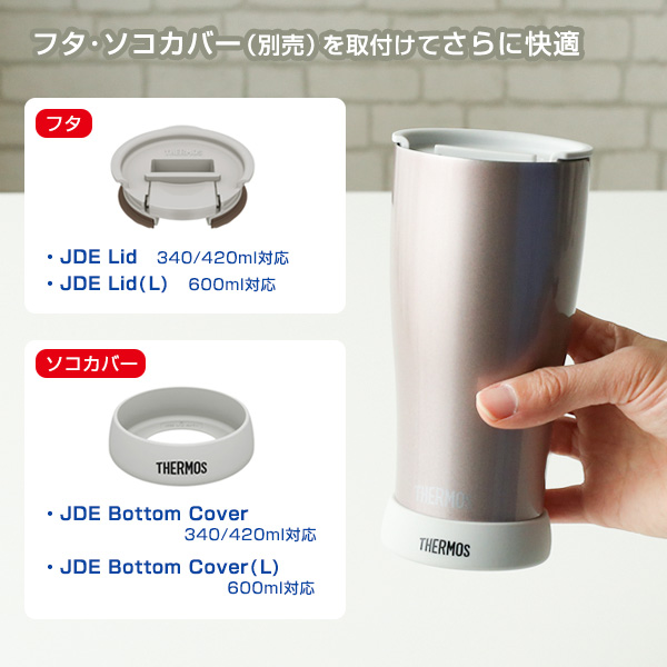 別売りのフタ・ソコカバーに対応サーモス製のタンブラー用フタ・ソコカバー(別売)を取り付け可能。対応製品は以下の通りです。