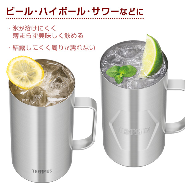 サーモス 真空断熱ジョッキ 1L JDK-1001 | THERMOS 保冷 ステンレス ビアジョッキ グラス コップ コールドドリンク 氷 溶けない 取っ手付き ぬるくならない 最後まで冷たい 冷たさ キープ 保冷ジョッキ 保温 お湯割り