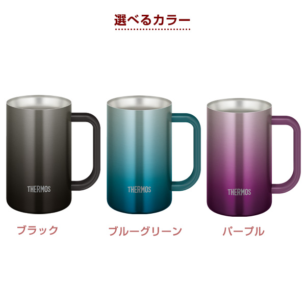サーモス 真空断熱ジョッキ 600ml JDK-601C ブラック/ブルーグリーン/パープル | THERMOS 保冷 ステンレス ビアジョッキ グラス コップ コールドドリンク 氷 溶けない 取っ手付き ぬるくならない 最後まで冷たい 保温