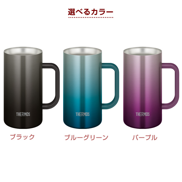サーモス 真空断熱ジョッキ 720ml JDK-721C ブラック/ブルーグリーン/パープル | THERMOS 保冷 ステンレス ビアジョッキ グラス コップ コールドドリンク 氷 溶けない 取っ手付き ぬるくならない 最後まで冷たい 保温
