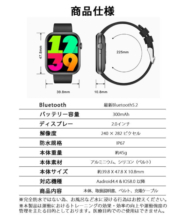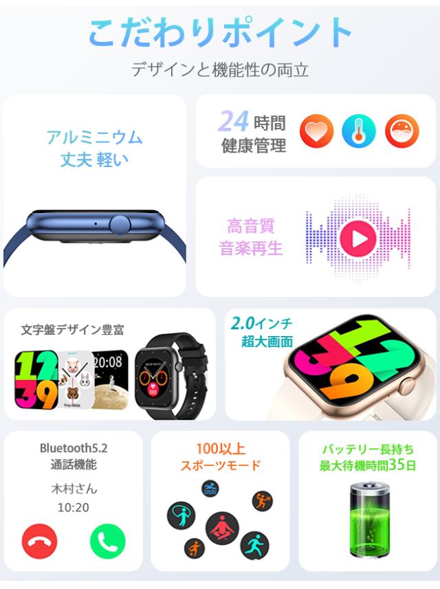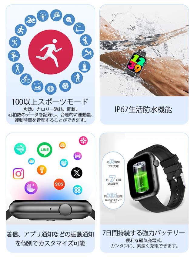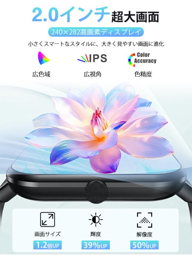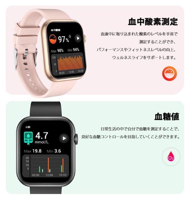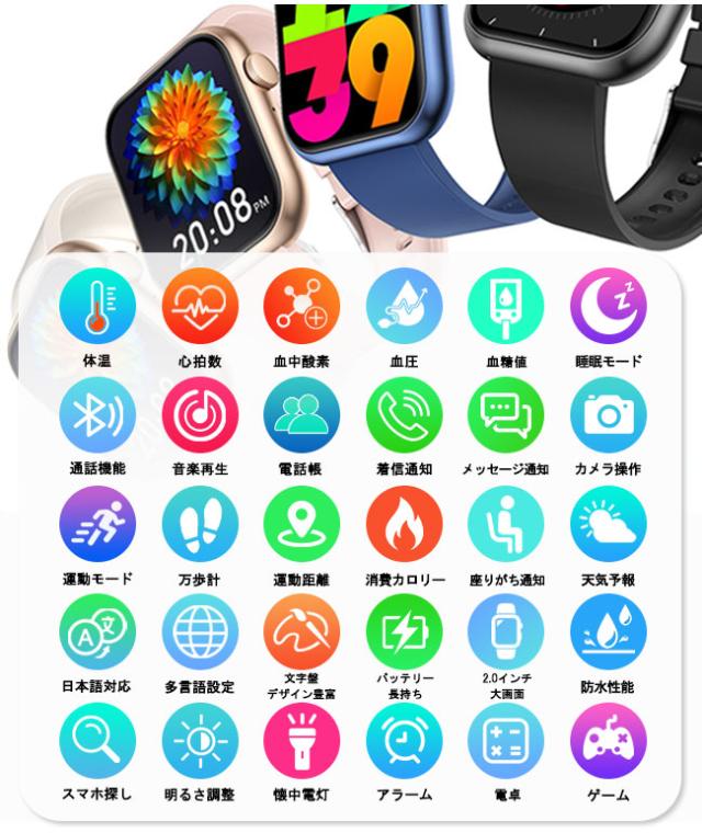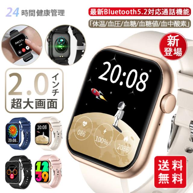 【80 円 OFFクーポン】新作 スマートウォッチ 血糖値 通話機能 腕時計 健康管理 技適認証 体温 血圧測定 血中酸素 音楽再生 2.0インチ大画面 防水 心拍計 万歩計 着信通知 睡眠 日本語対応 iphone android 母の日 父の日 敬老の日 プレゼントagesugi_sfa